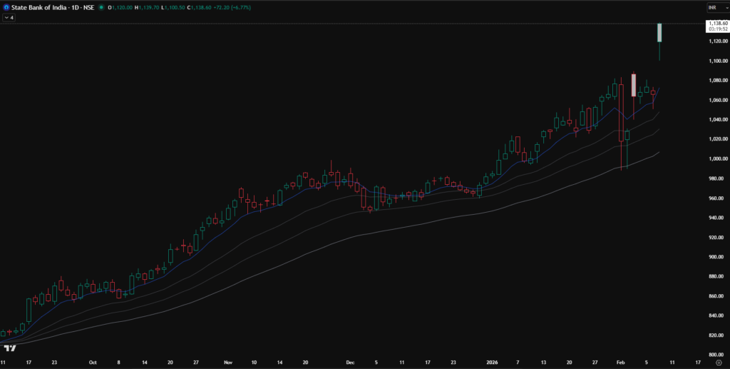 When EMAs are sloped and aligned, pullbacks are typically corrective rather than reversal signals. The SBI case illustrates how structured EMA alignment can guide traders toward continuation opportunities instead of emotional decision-making.